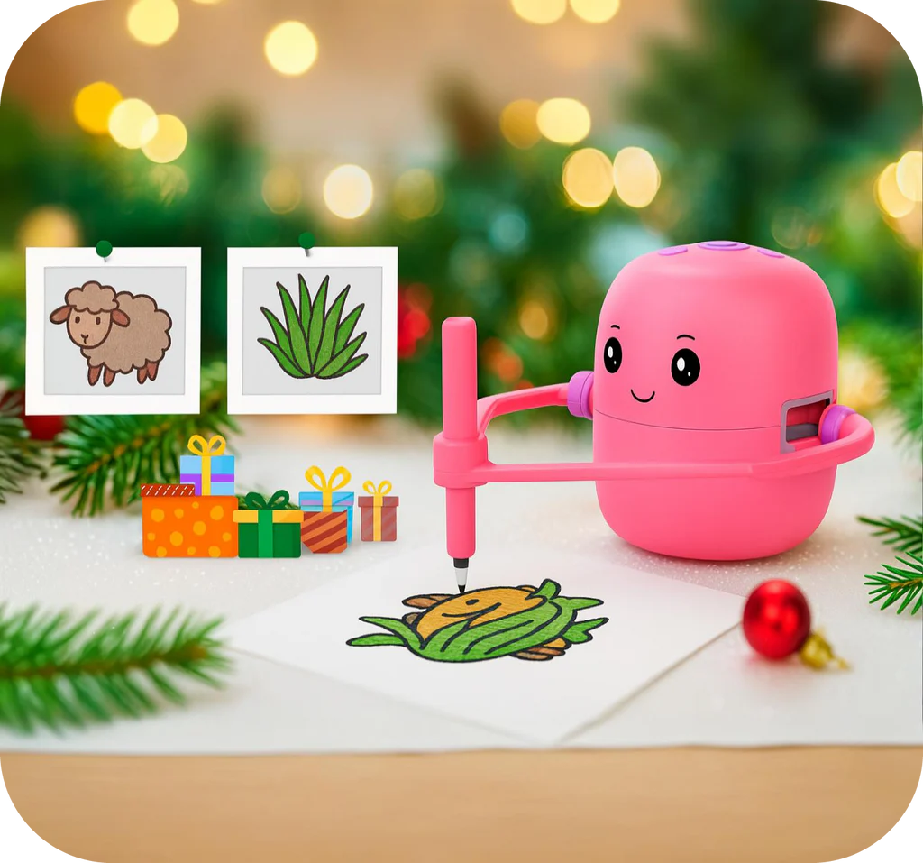 ToddsIQ™ Our smart drawing robot captures their attention with exciting, step-by-step creativity — no apps, no screens, just pure imagination.